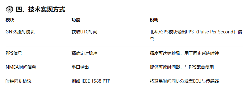 衛(wèi)星授時(shí)(Satellite Timing)在自動(dòng)駕駛中的應(yīng)用非常關(guān)鍵,它為車輛的定位、通信、感知融合和系統(tǒng)同步等環(huán)節(jié)提供了高精度時(shí)間基準(zhǔn);以下是衛(wèi)星授時(shí)在自動(dòng)駕駛中的作用和應(yīng)用場(chǎng)景的概述: