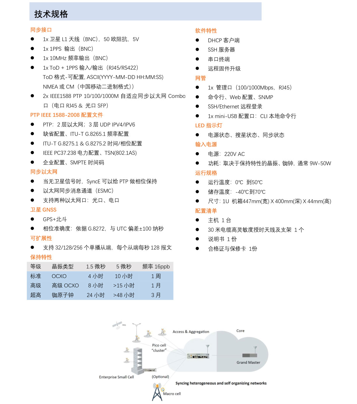 HJ310設計用于分布式同步結構。將主時間源下移到網絡邊緣接入層,這樣能更好的滿足小基站和RRH對于相位、頻率的更高要求。部署集中式的祖時鐘,必須要求全路徑設備都支持高精度PTP同步信號,這樣成本會很高。下一代網絡需要應對快速增長的流量,需要一張更分散化的網絡部署。...
